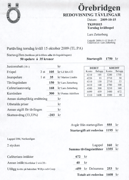 för en kassör! Alla kostnader är färdigkonterade på utskriften i en litet finns