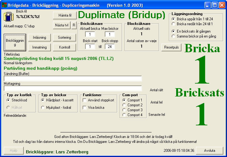 lägga egna brickor genom att enkelt klicka på resp hand.